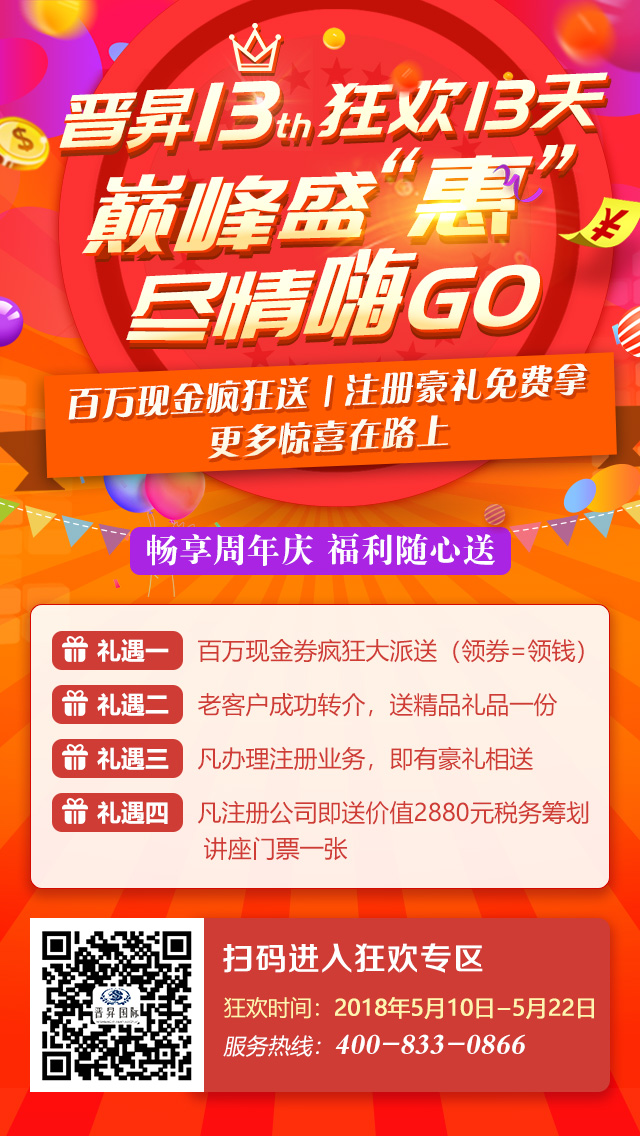 晉昇13周年慶典!注冊(cè)中國(guó)香港、海外公司有福利!